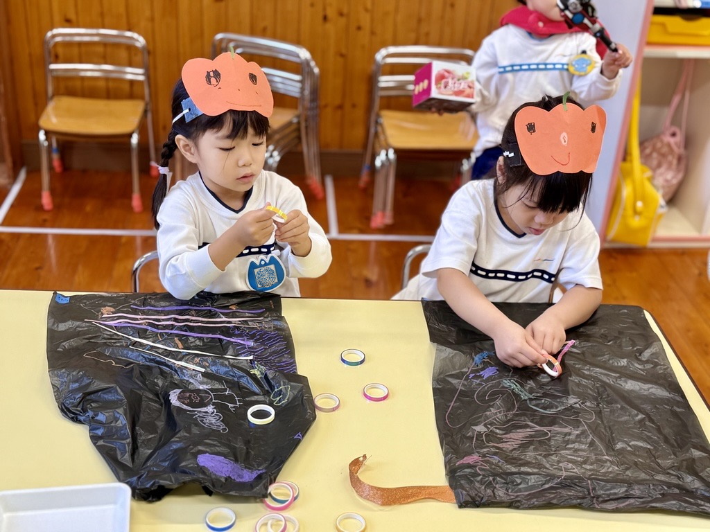 ハロウィンパーティーにむけて、ぞう組さんが自分たちでお面とマントを手作りしました!👻🧡