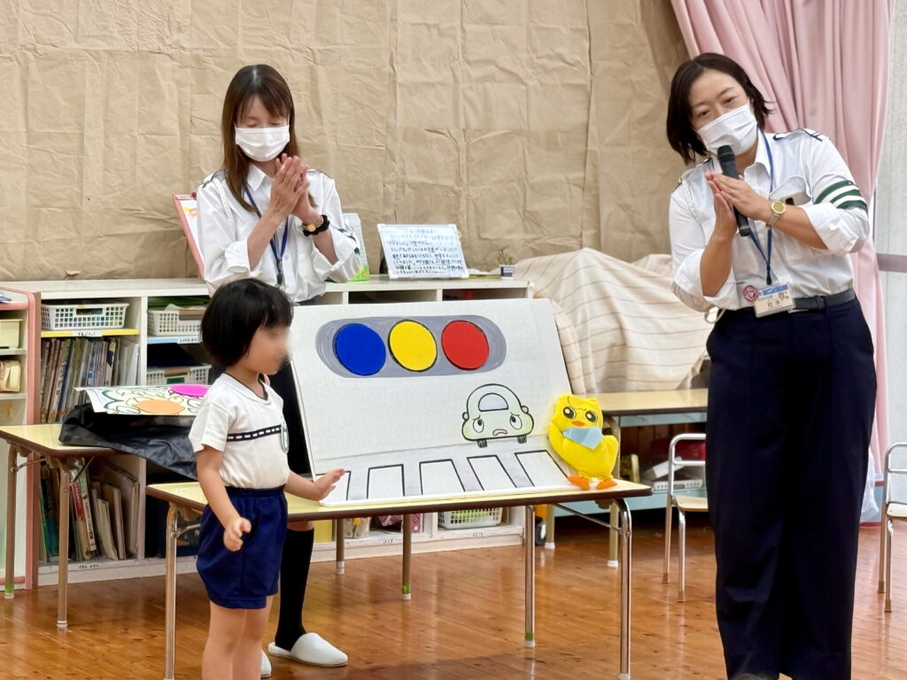 まずは室内で、紙芝居を使って「交通安全」と「防犯」のお話🎨📖