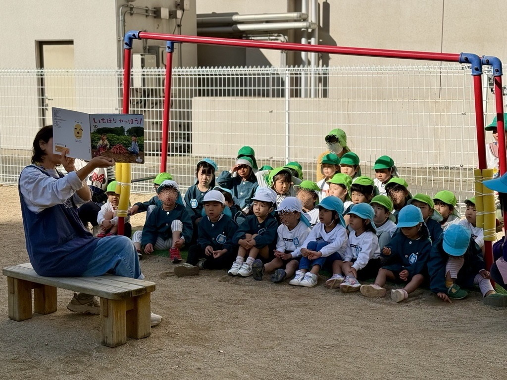おいもを探す前に、先生のお話をちゃんと聞いて準備もばっちりです💮