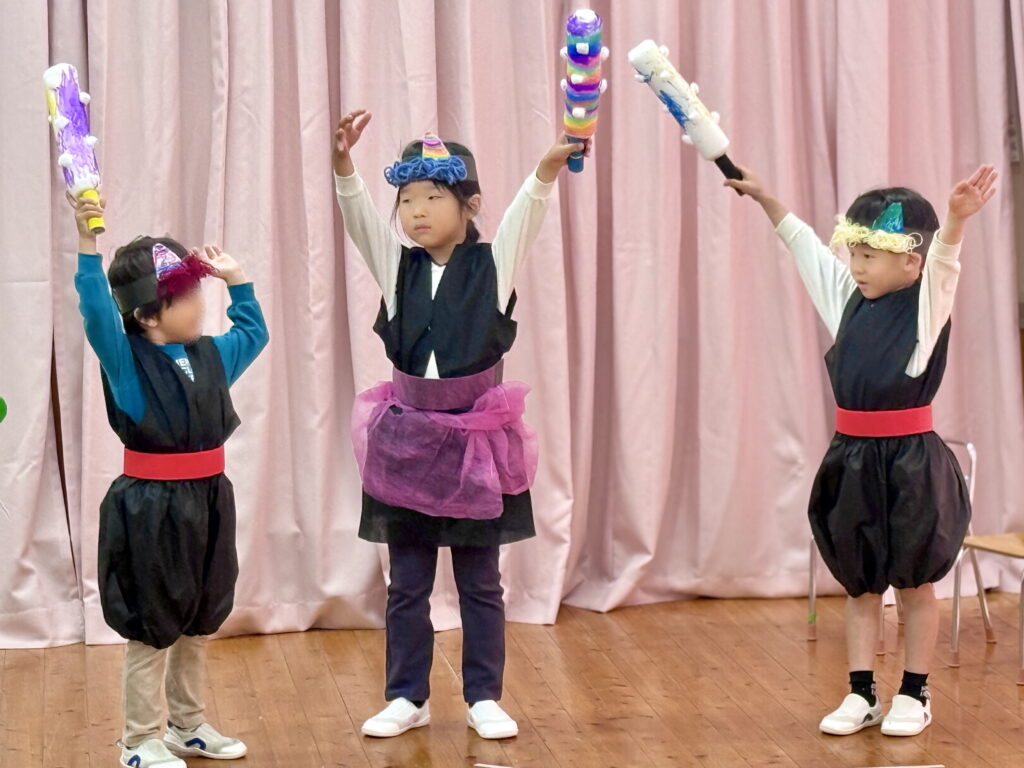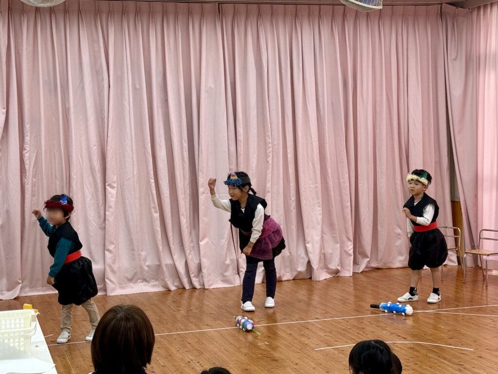 きみどりらいおん組さん、続いて披露するのは「ももたろう🍑」の演劇です!