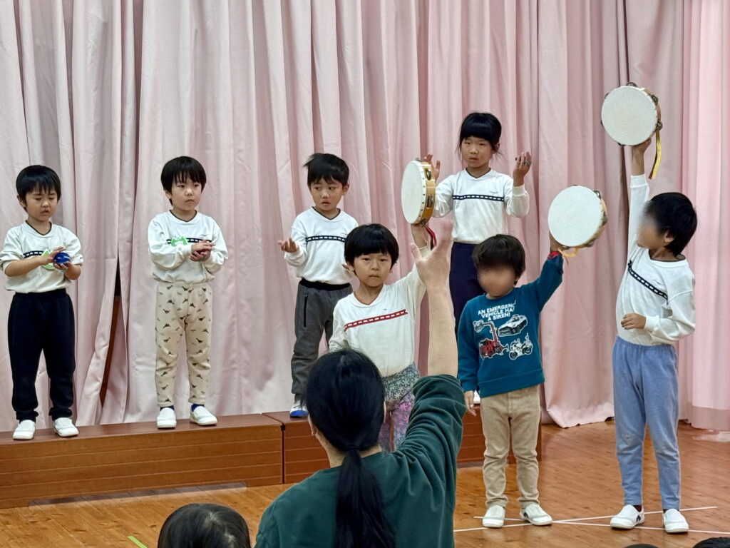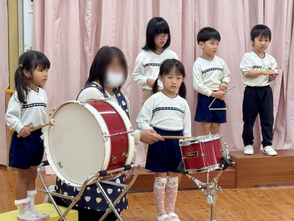 太鼓の「ドン!」、小太鼓、カスタネット、タンバリンの「タンタンシャララ♪」、トライアングルのキラキラの音🎵