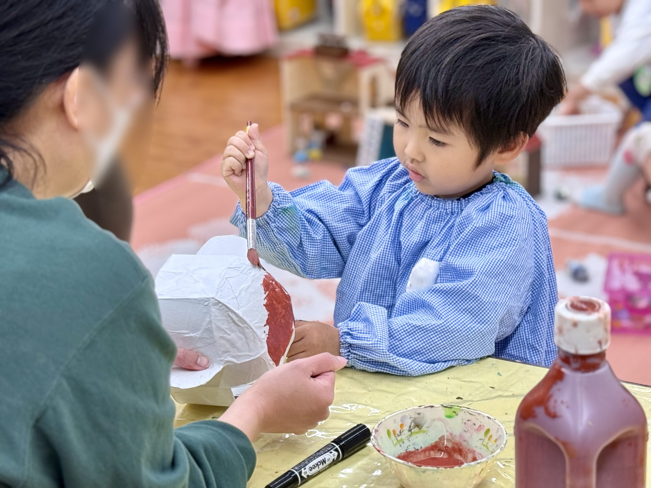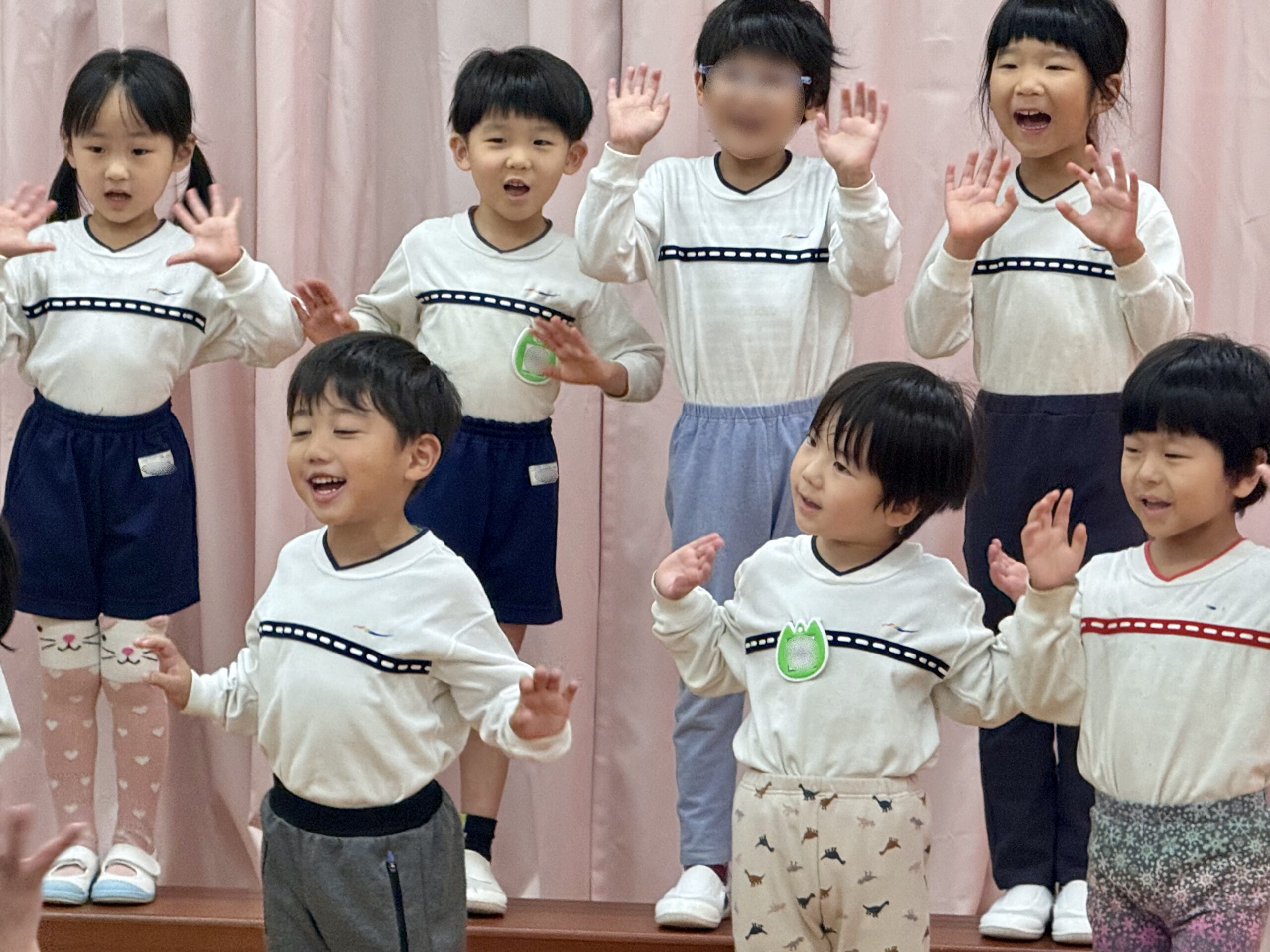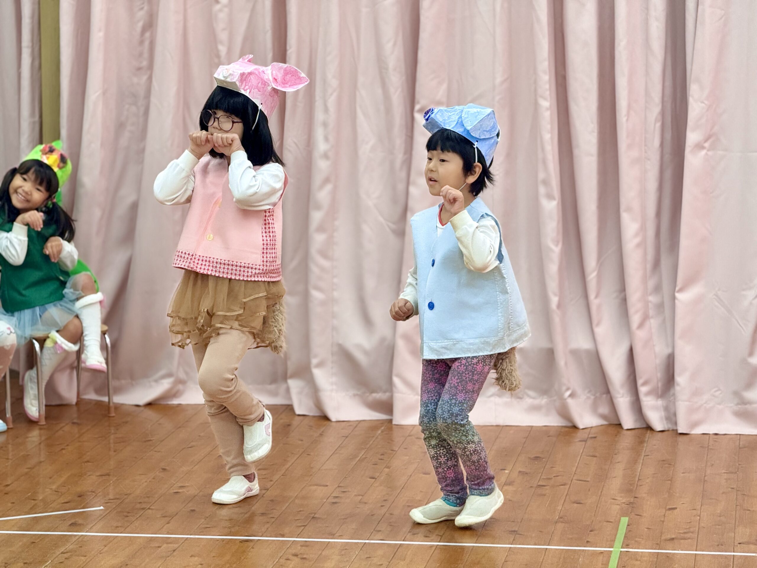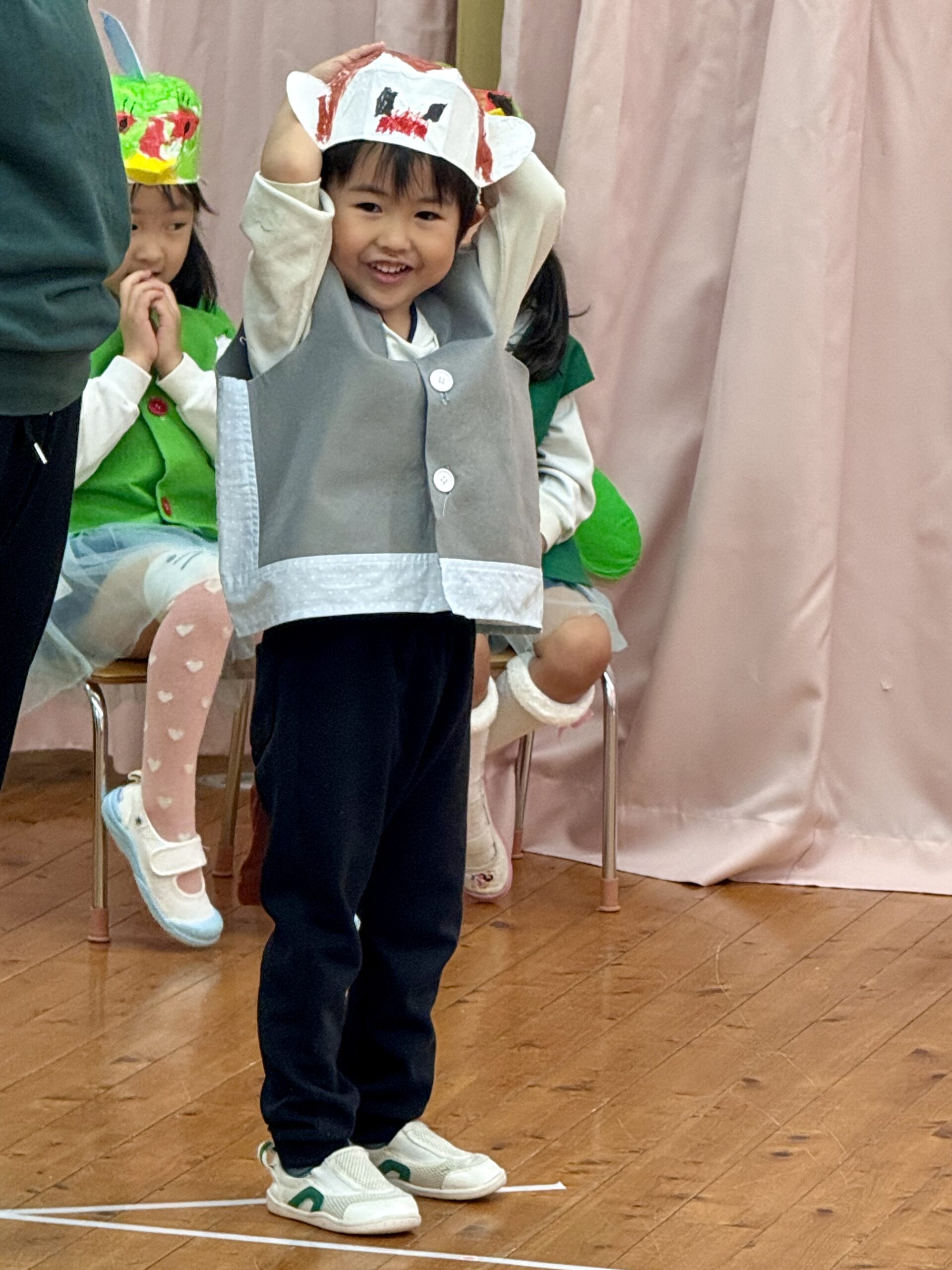 小さな手でぎゅっと握りしめた小道具やかぶっている動物のお面🐶🐵🐦は、発表会のためにみんなが考えて手作りしました🎨