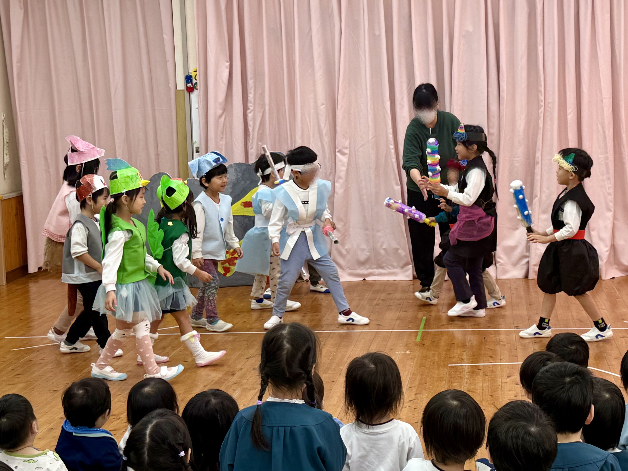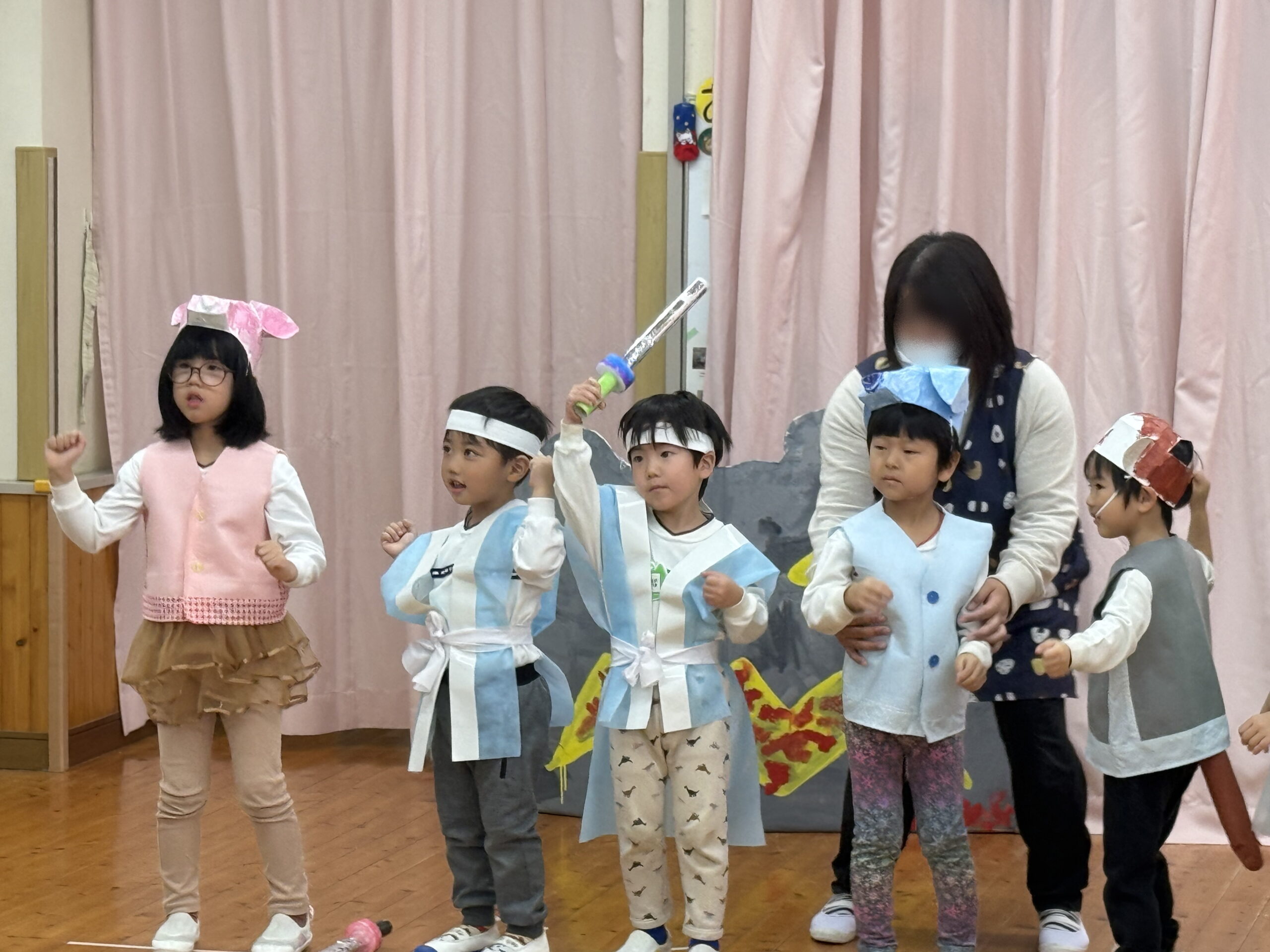 きみどりらいおん組さん、続いて披露するのは「ももたろう🍑」の演劇です!