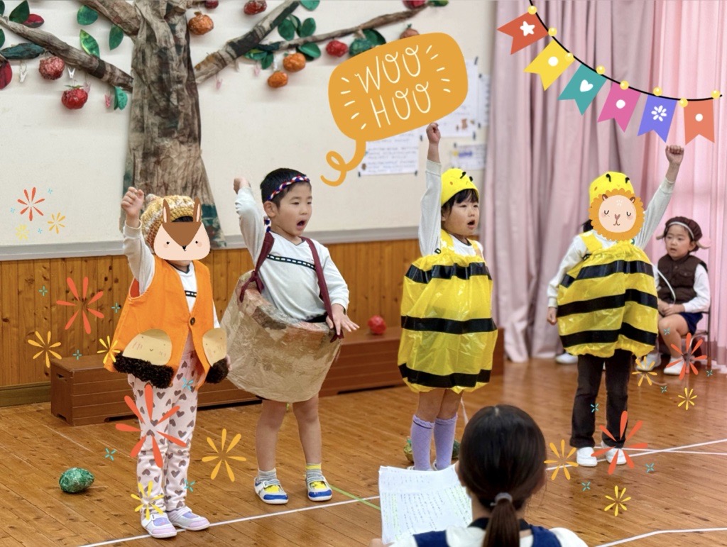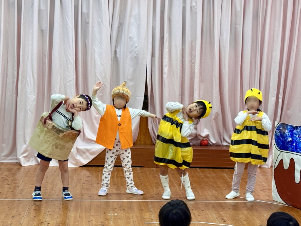 一生懸命覚えたセリフと一緒に大きな動きでそれぞれとても上手に表現しています🌈✨