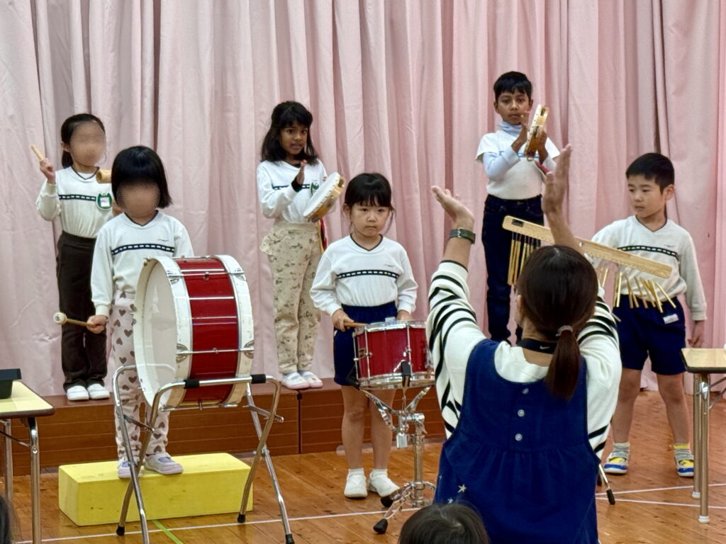 年長組のみどりらいおん組さんは、みんなで少し難しい楽器に挑戦しています。