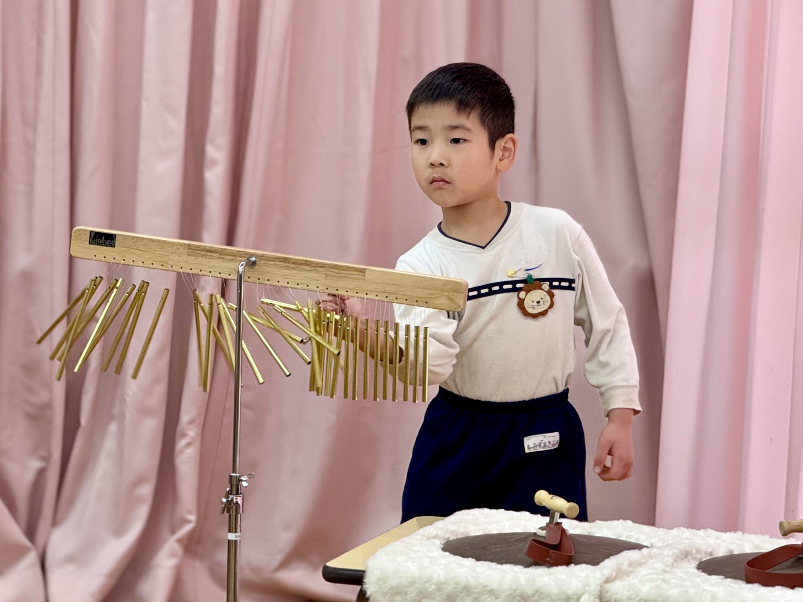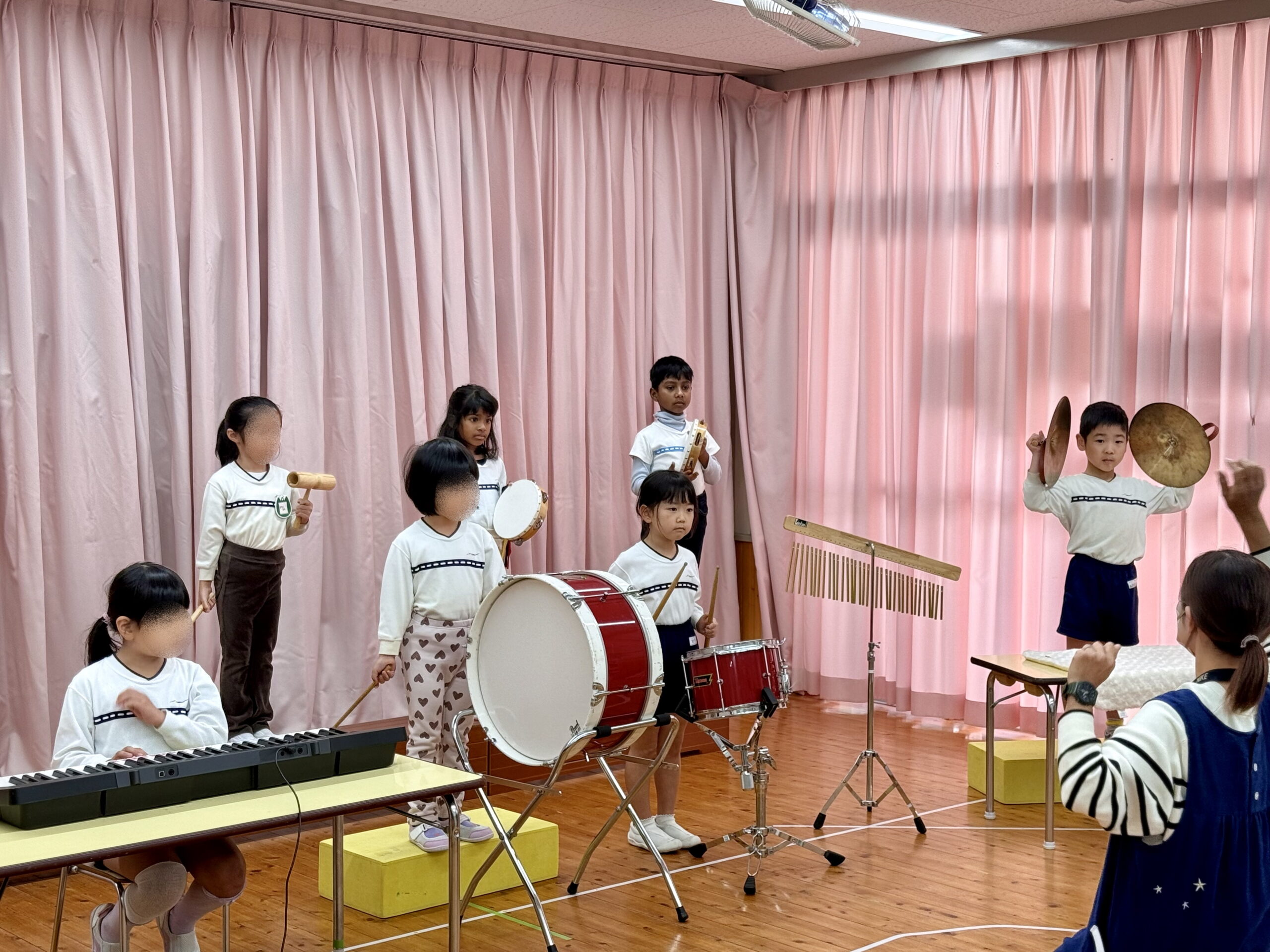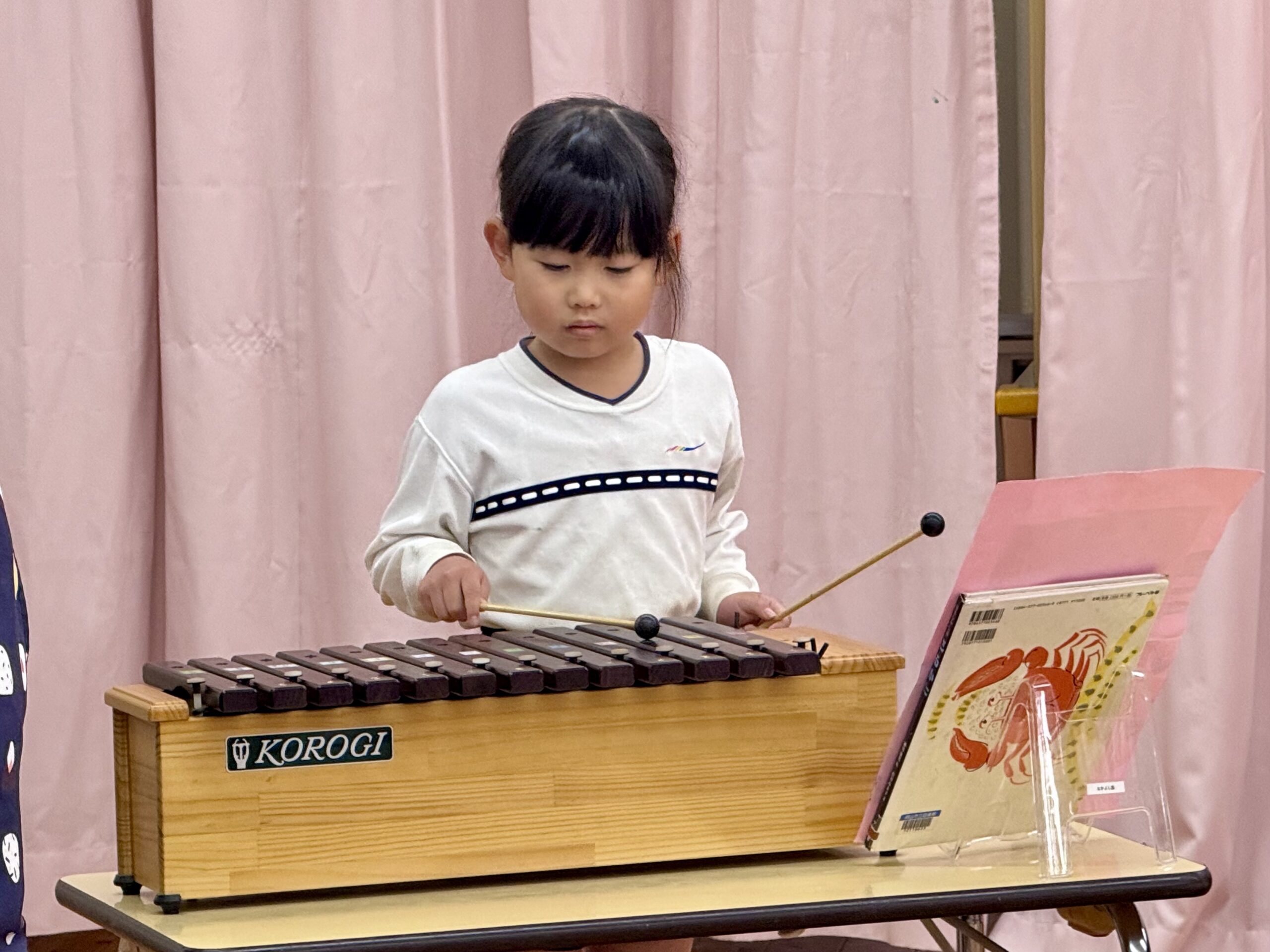 年長組のみどりらいおん組さんは、みんなで少し難しい楽器に挑戦しています。