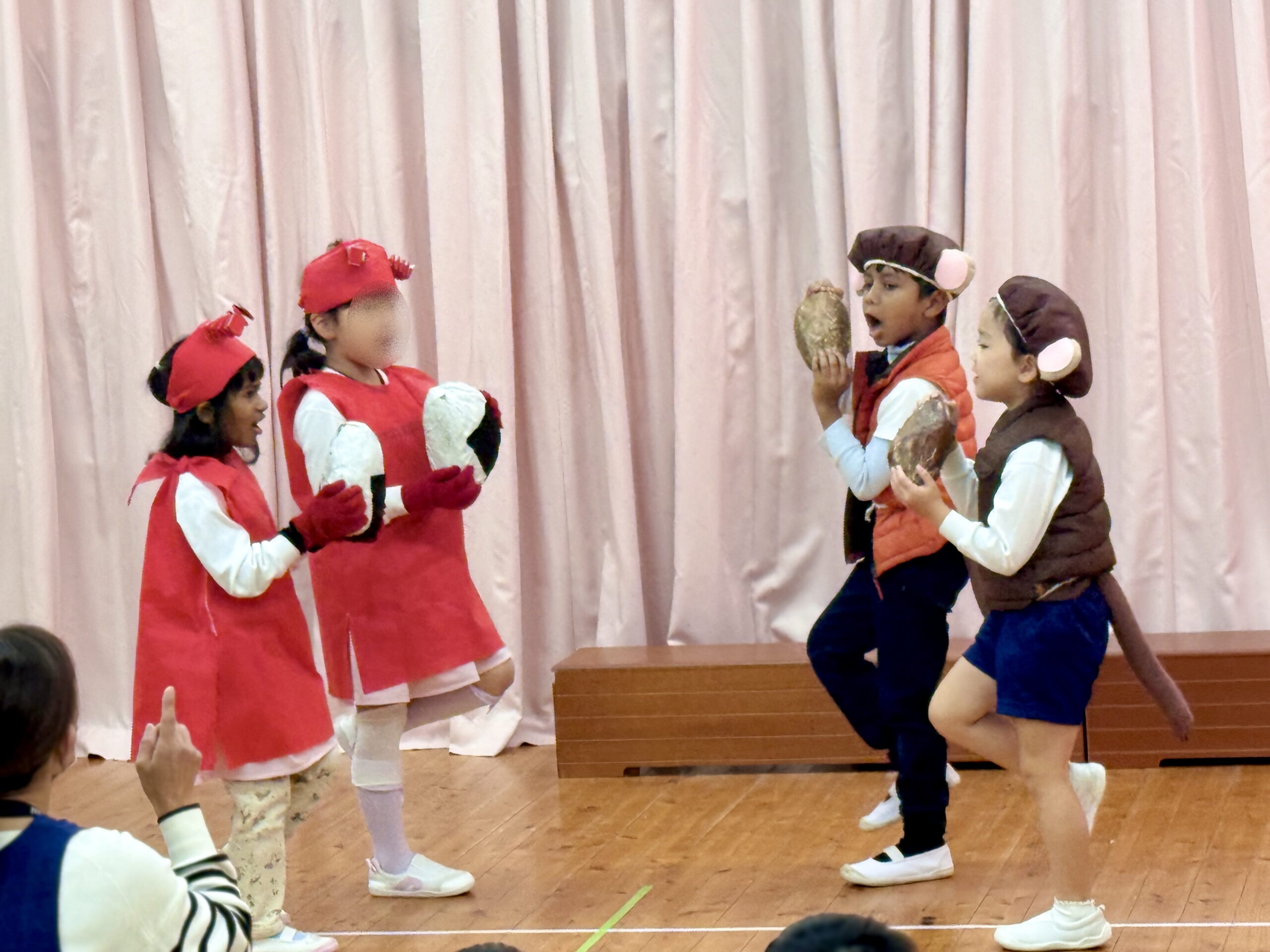 一生懸命覚えたセリフと一緒に大きな動きでそれぞれとても上手に表現しています🌈✨