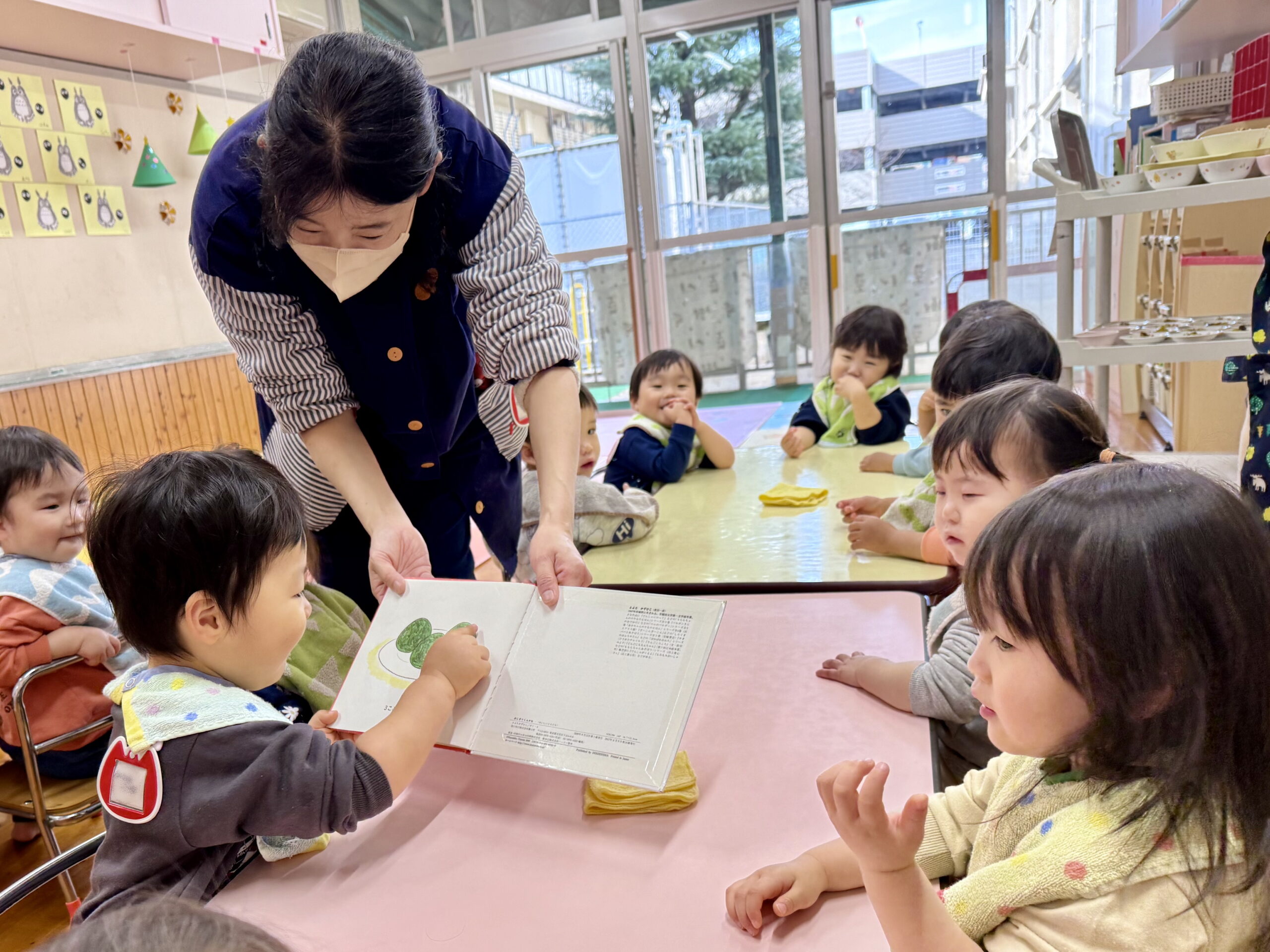 給食の時間になると、先生がおいしいおにぎり🍙の絵本を読んでくれました👀