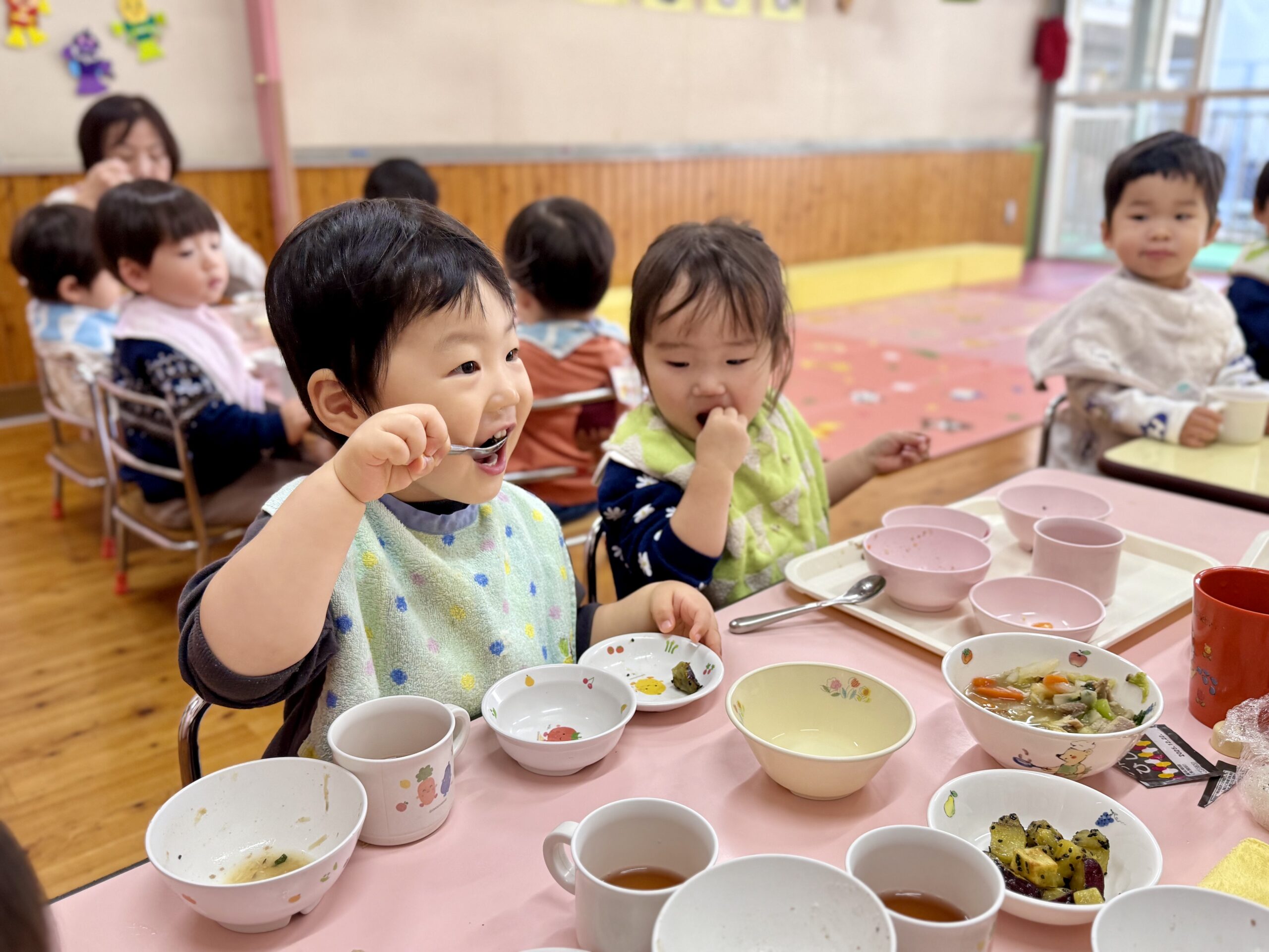 給食の時間は、うさぎぐみさんのかわいい姿がたくさん見られる、ほほえましいひとときでした💕🐰💕