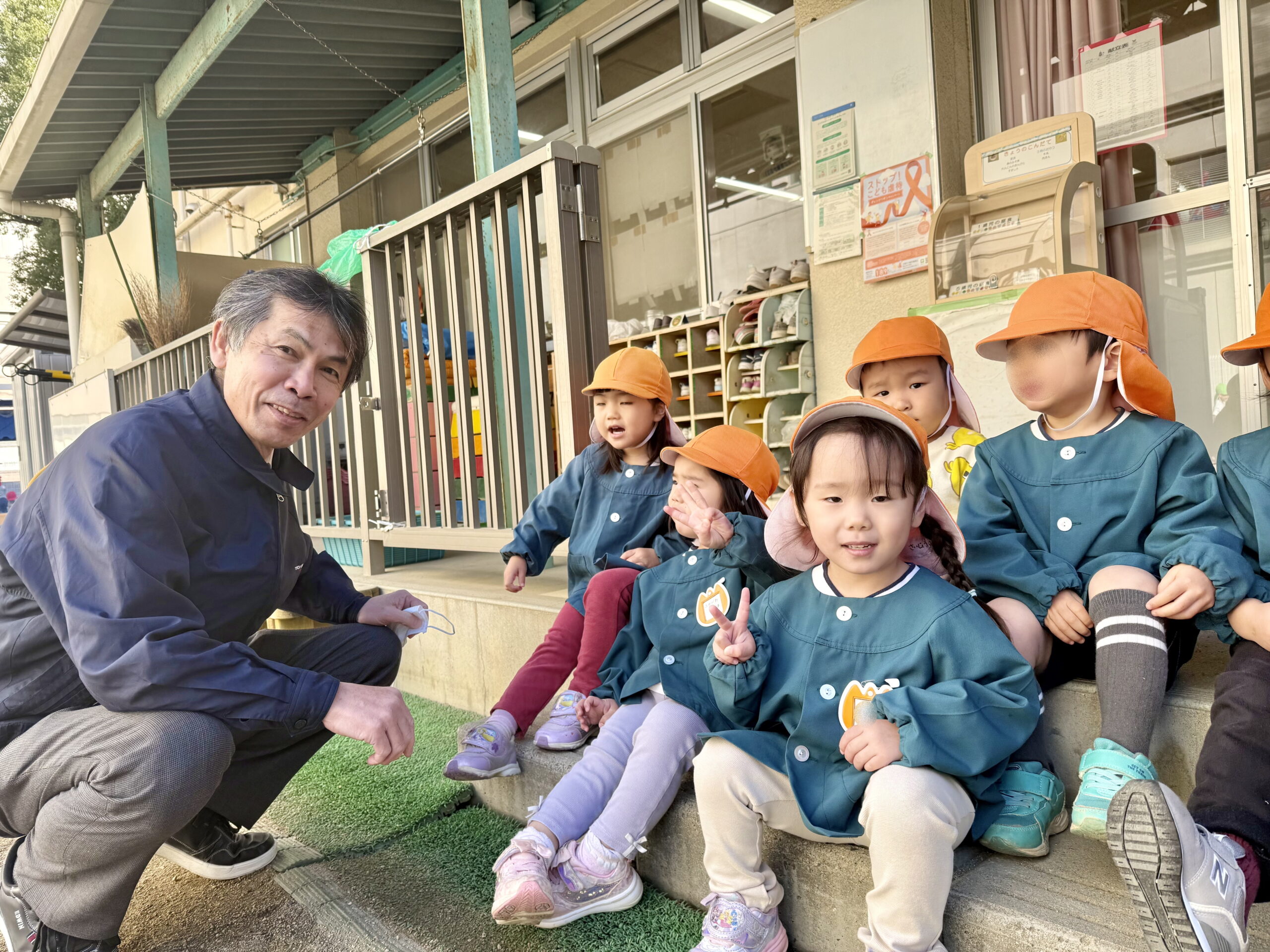 手をつないで園に戻ると、ここで園長先生とはしばしのお別れ😿