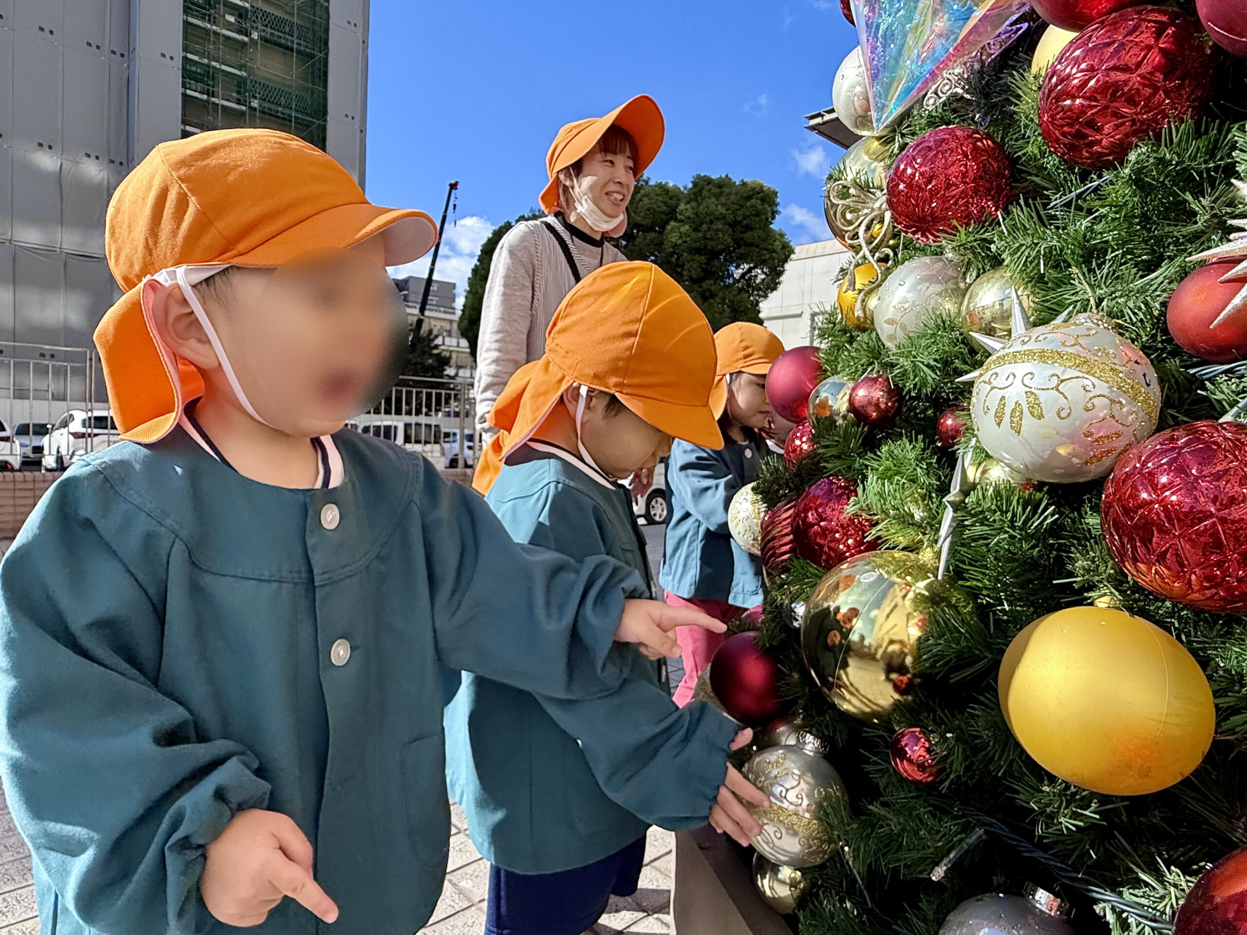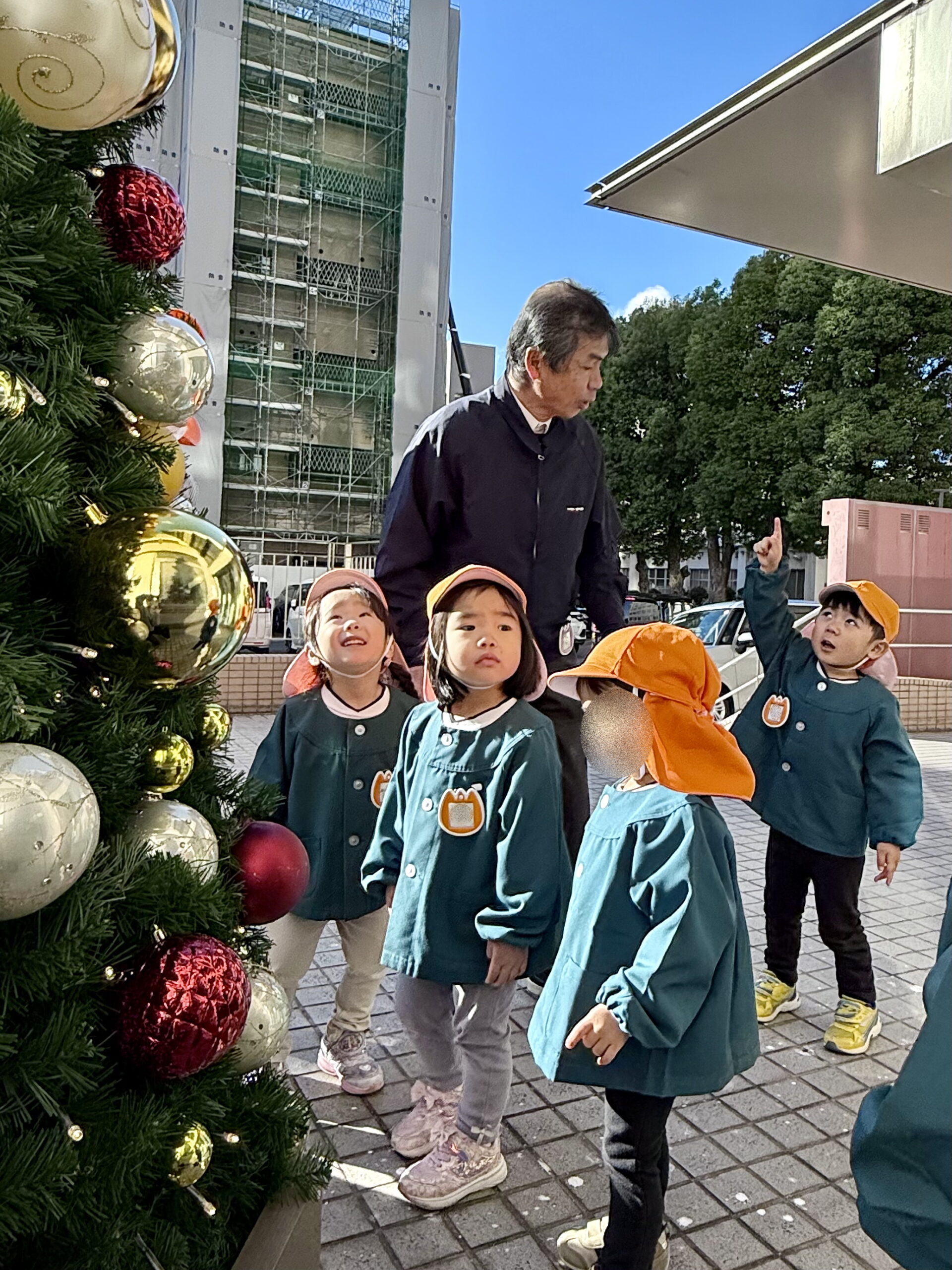 今日のりす組さんは、みんなが大好き💕な園長先生と病院入り口のクリスマスツリーまでお散歩に行きました👣