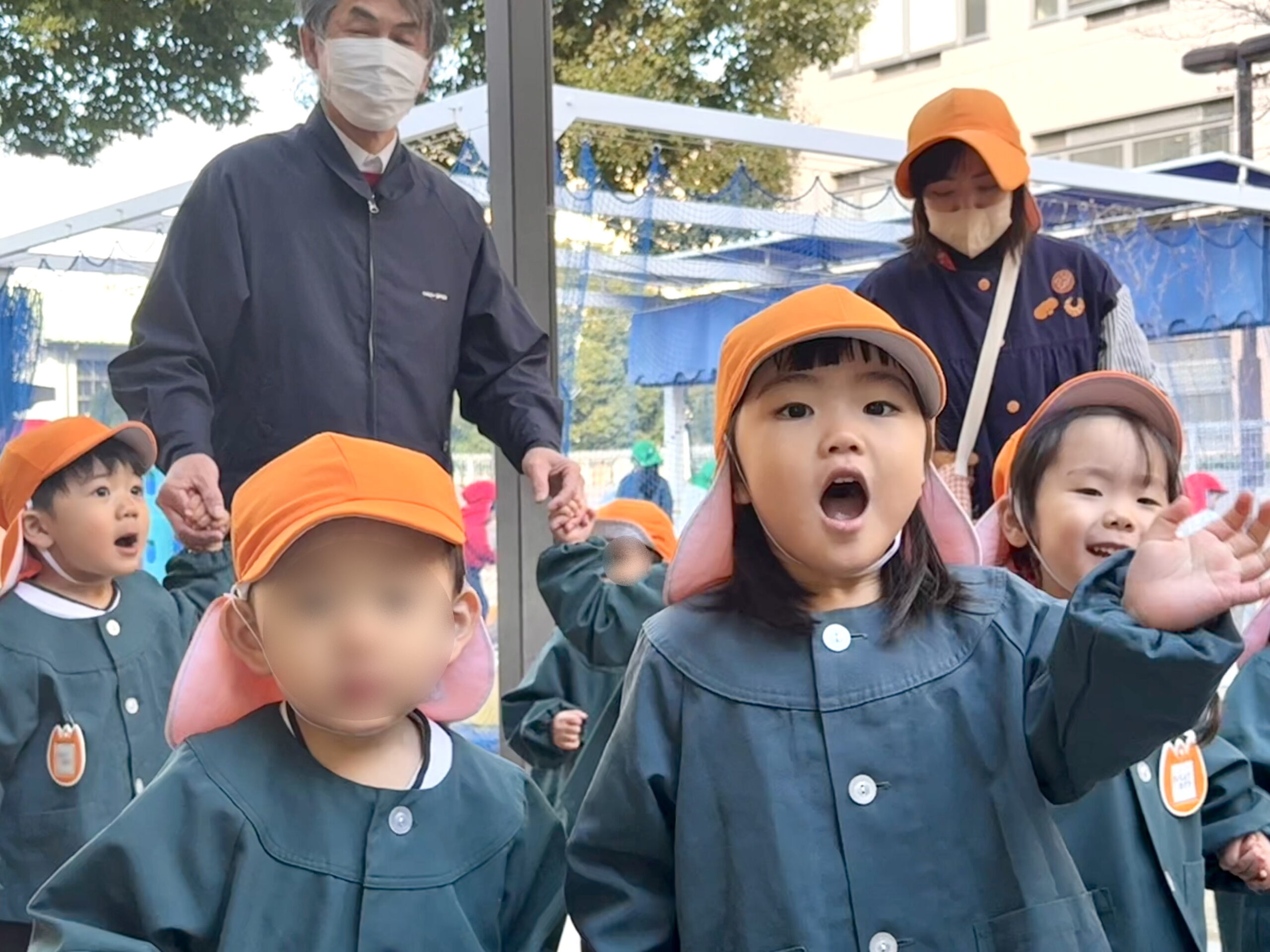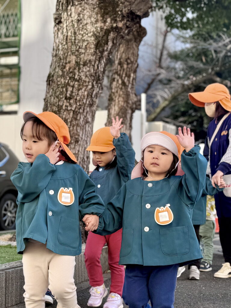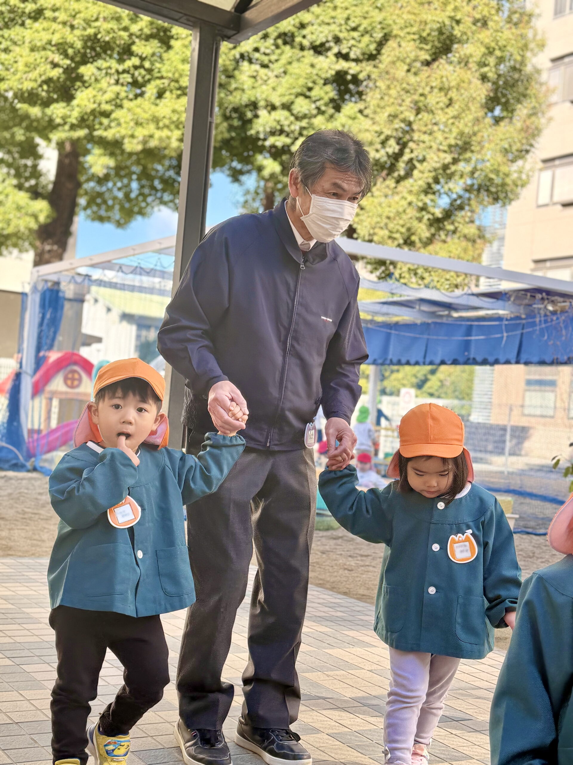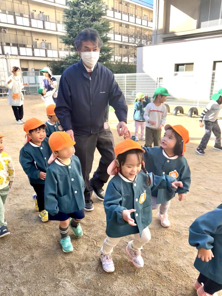 園長先生が「さあ、行こう!」と言うと、りす組の子どもたちは園長先生の手を引いて、元気に走り出しました🏃🏃