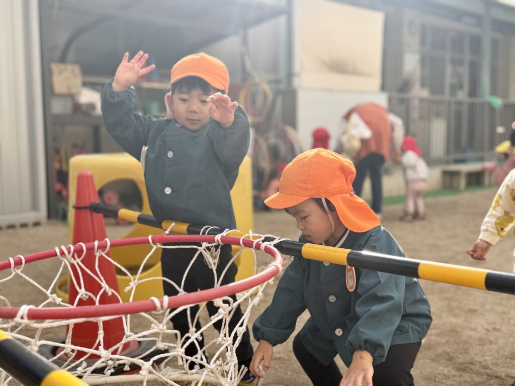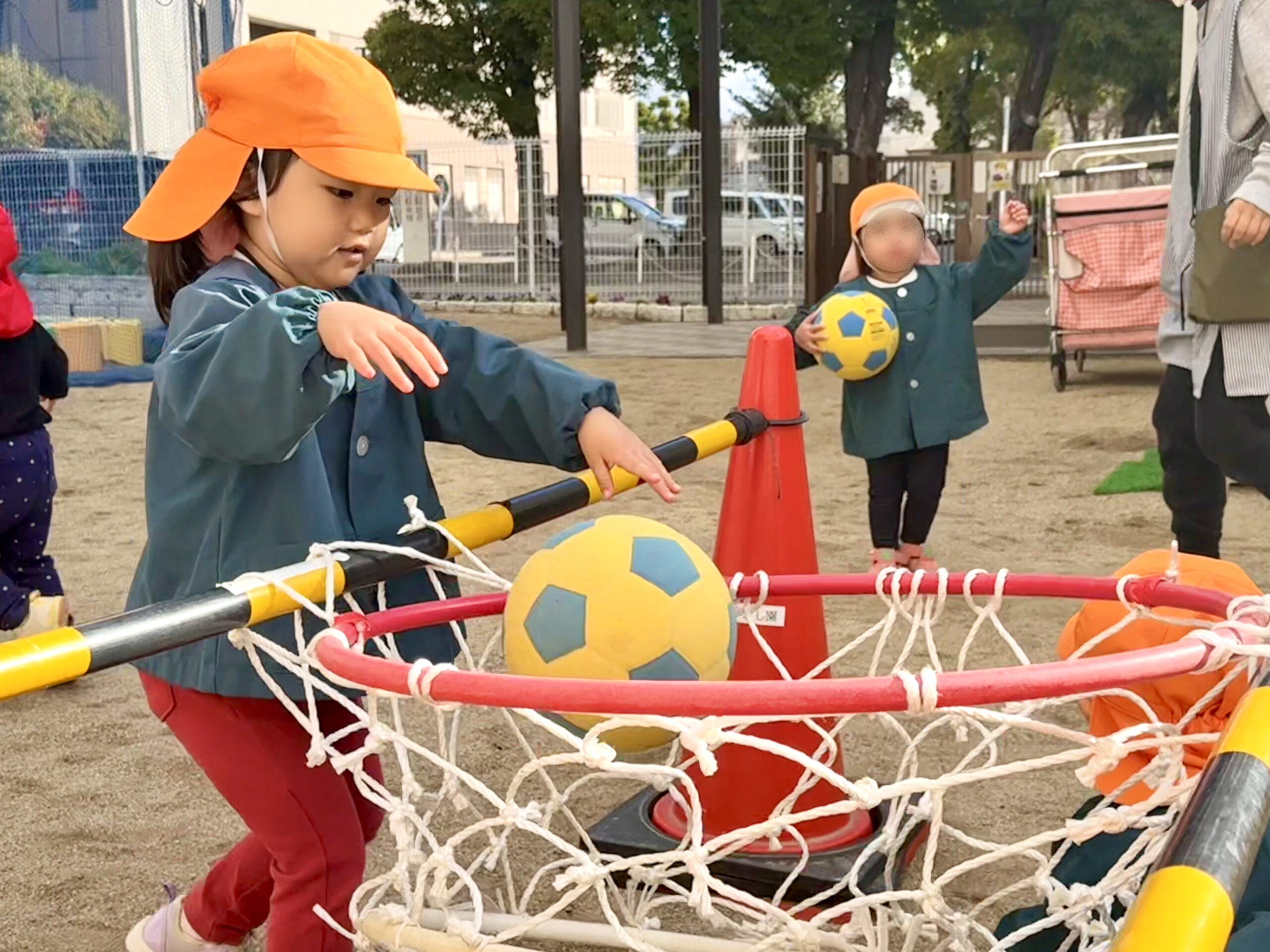 勢いあまってゴールに入ってしまう子もいましたが、とっても楽しいボール遊びににこにこが止まりません😊✨