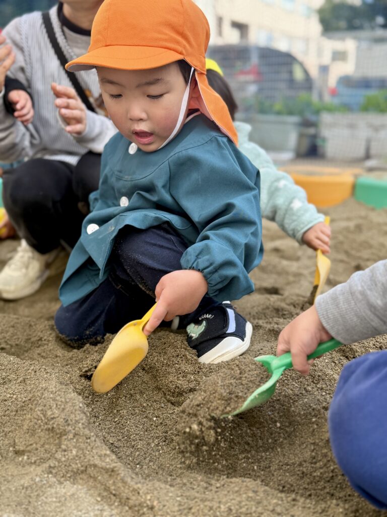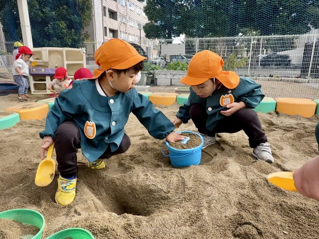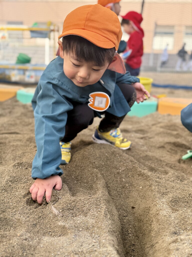 砂場では、男の子たちは穴を掘って「ここの大根は辛みがいいんだよ~」と一言😊✨