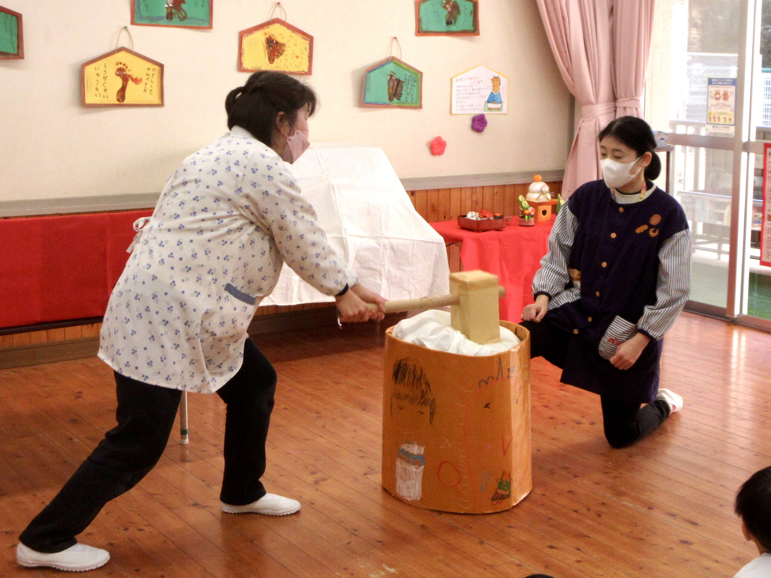「おもちつきー!」と元気な声が飛び出し、