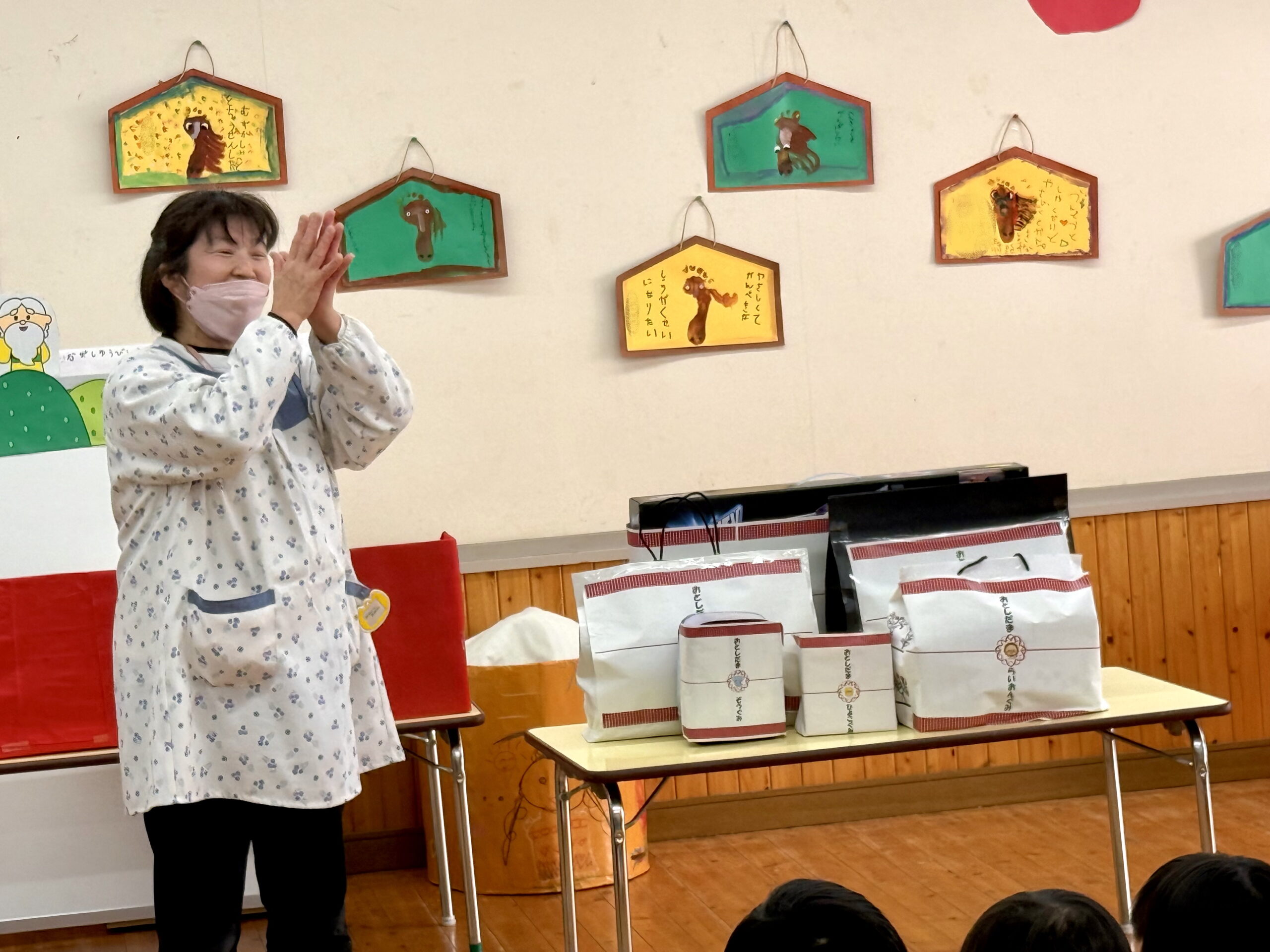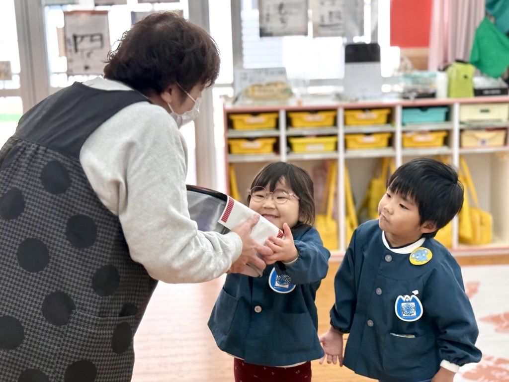 小さい組さんから順番に笑顔いっぱいにお年玉を受け取ります😊💕