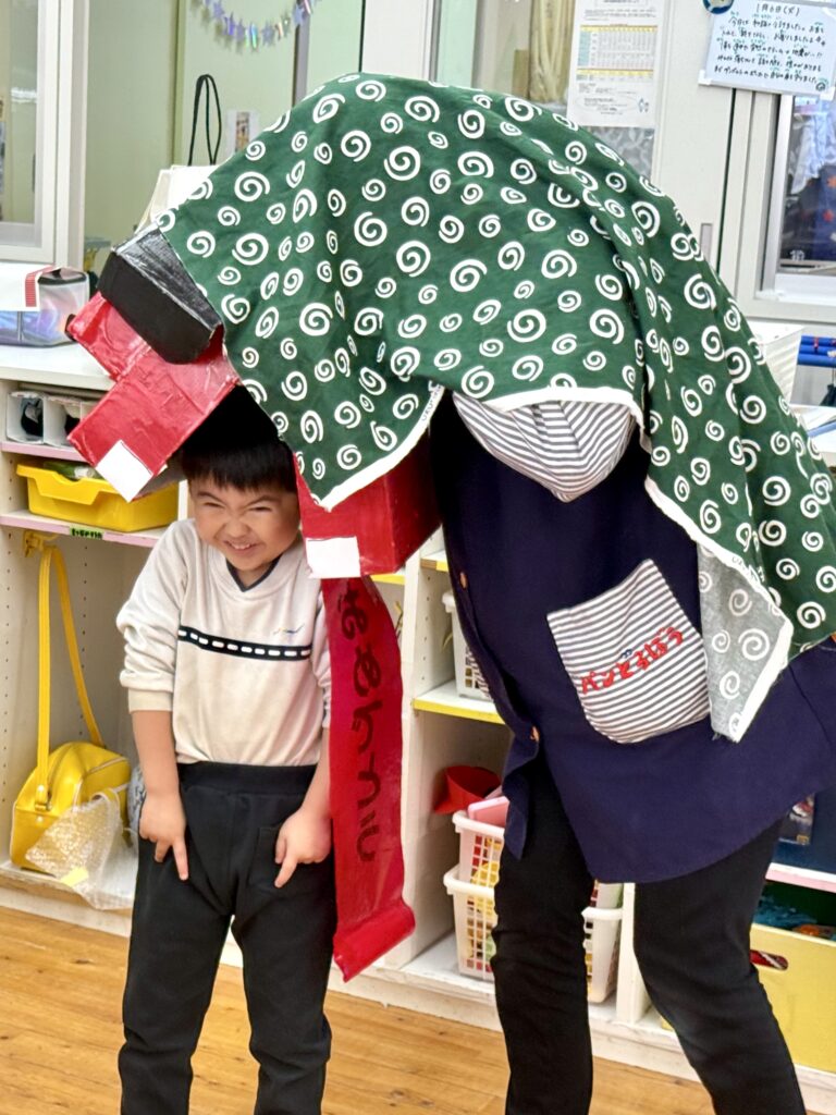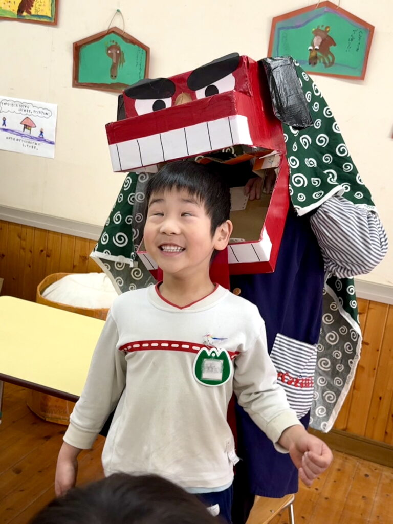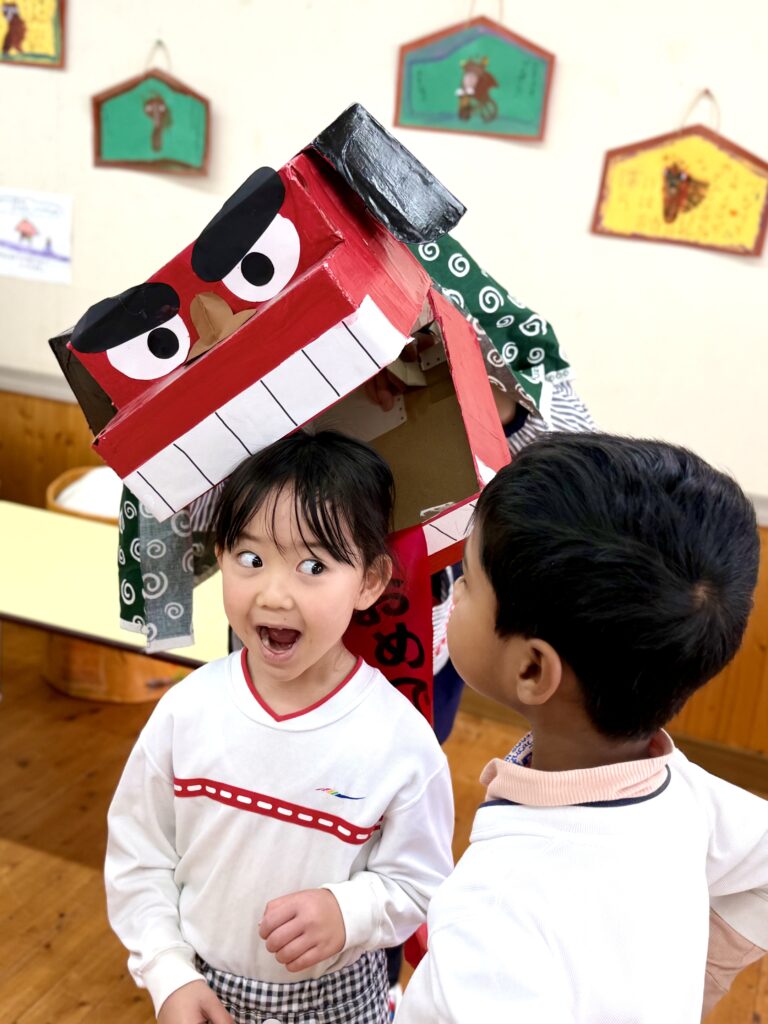 楽しい踊りを踊る獅子舞とすっかり仲良し💕になった園児たち。