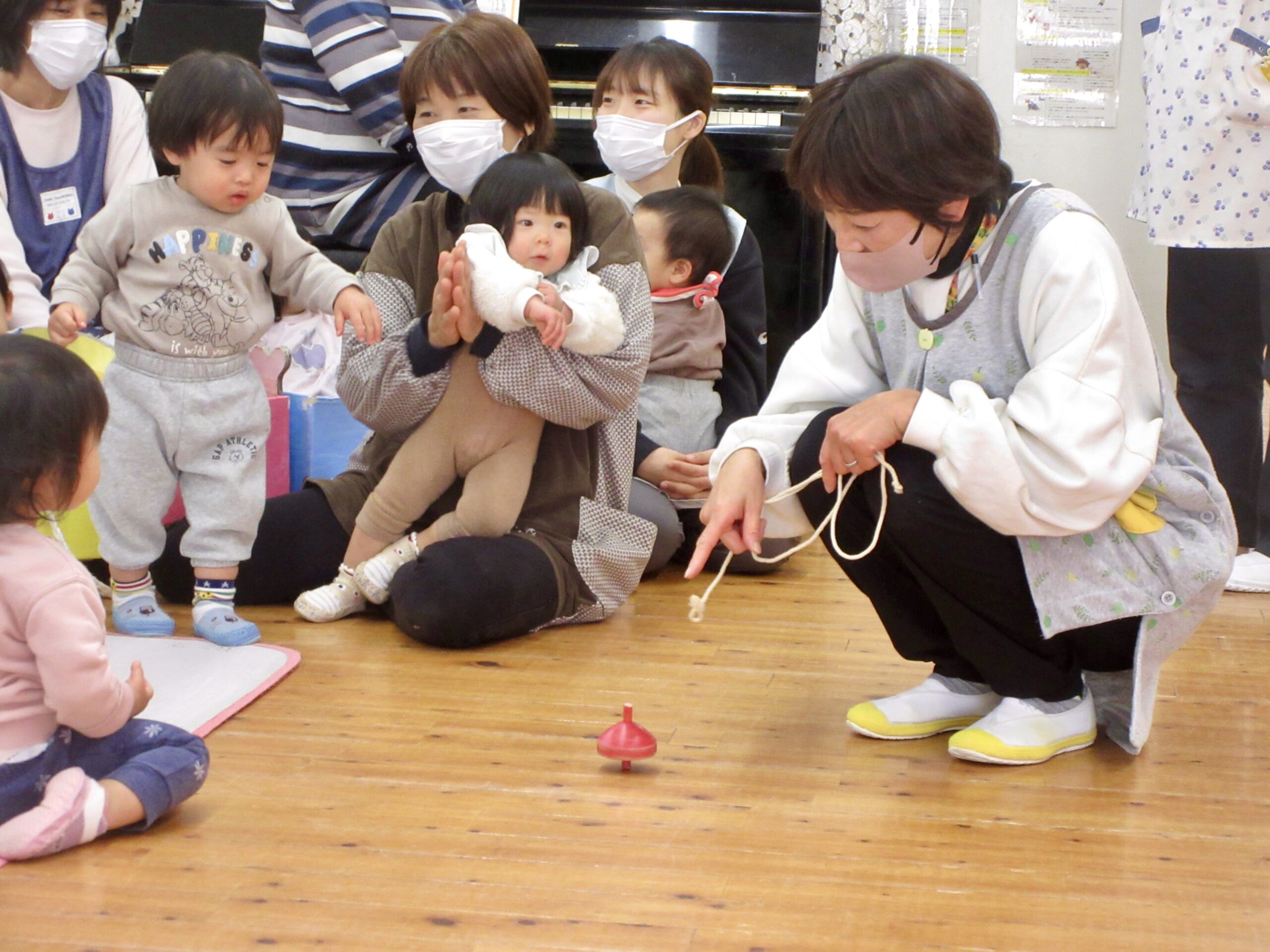 続いて、先生がお正月にこっそりと練習してくれた、けん玉やコマ回しを披露してくれました✨🌈