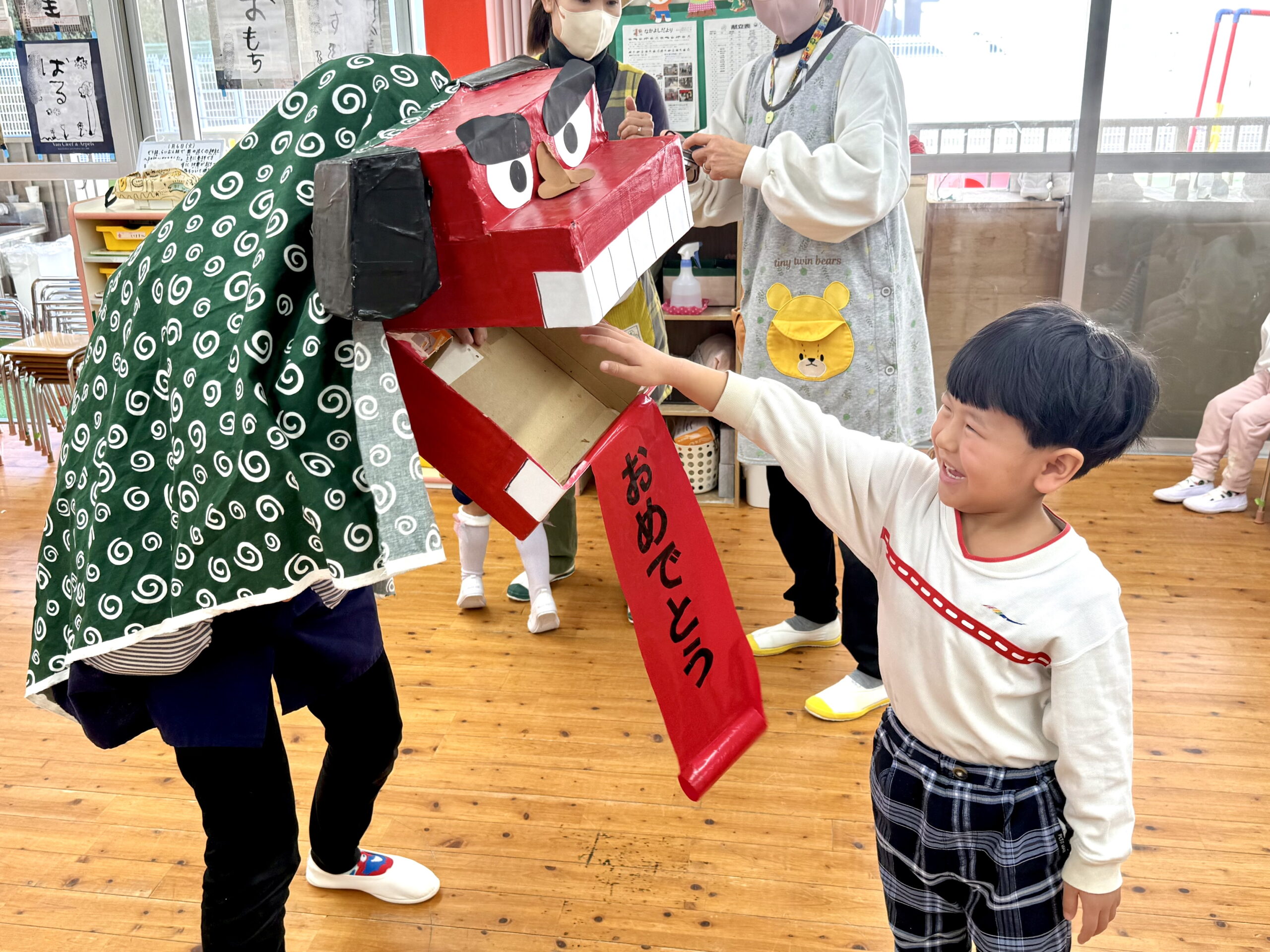 楽しい踊りを踊る獅子舞とすっかり仲良し💕になった園児たち。