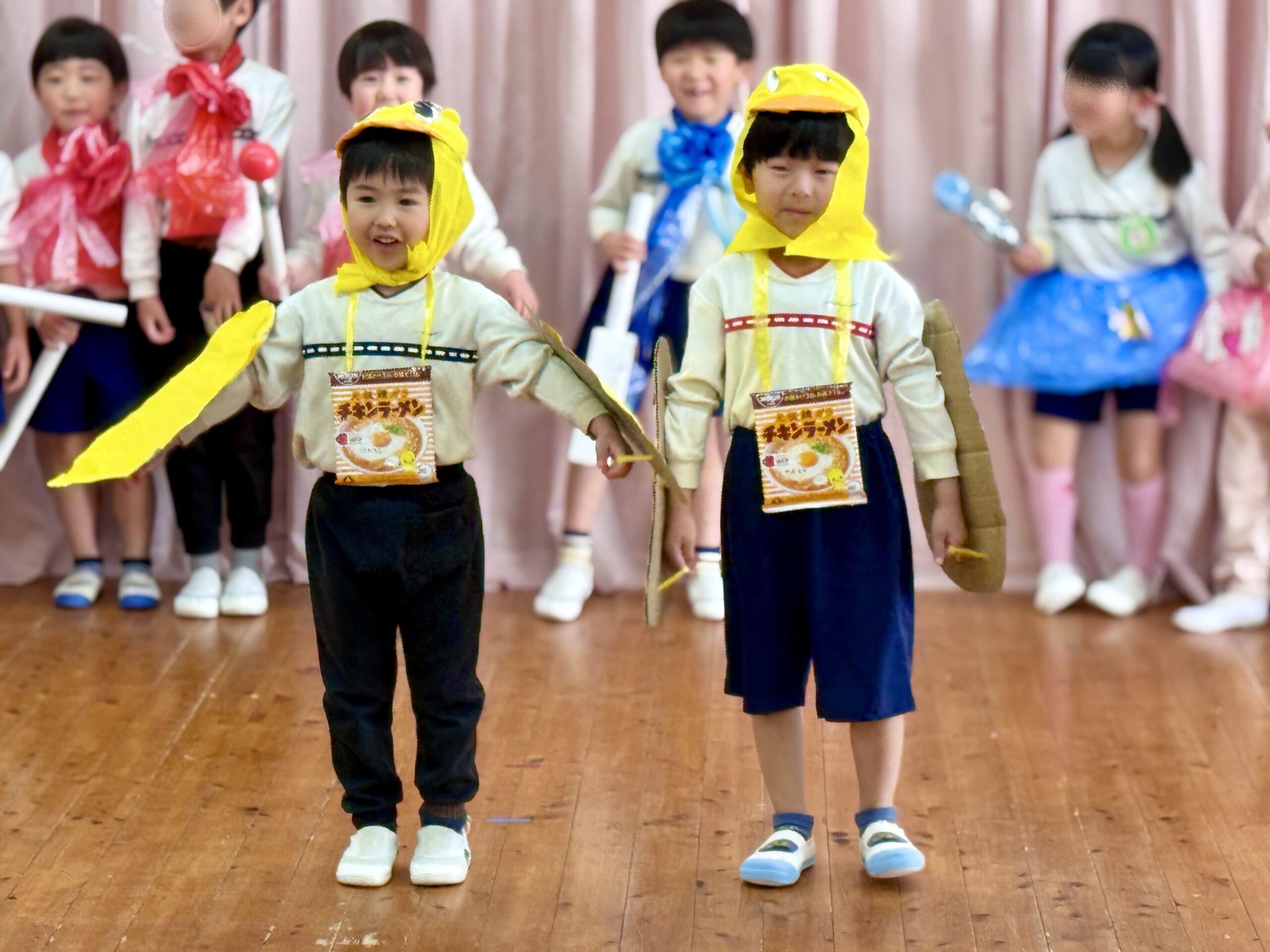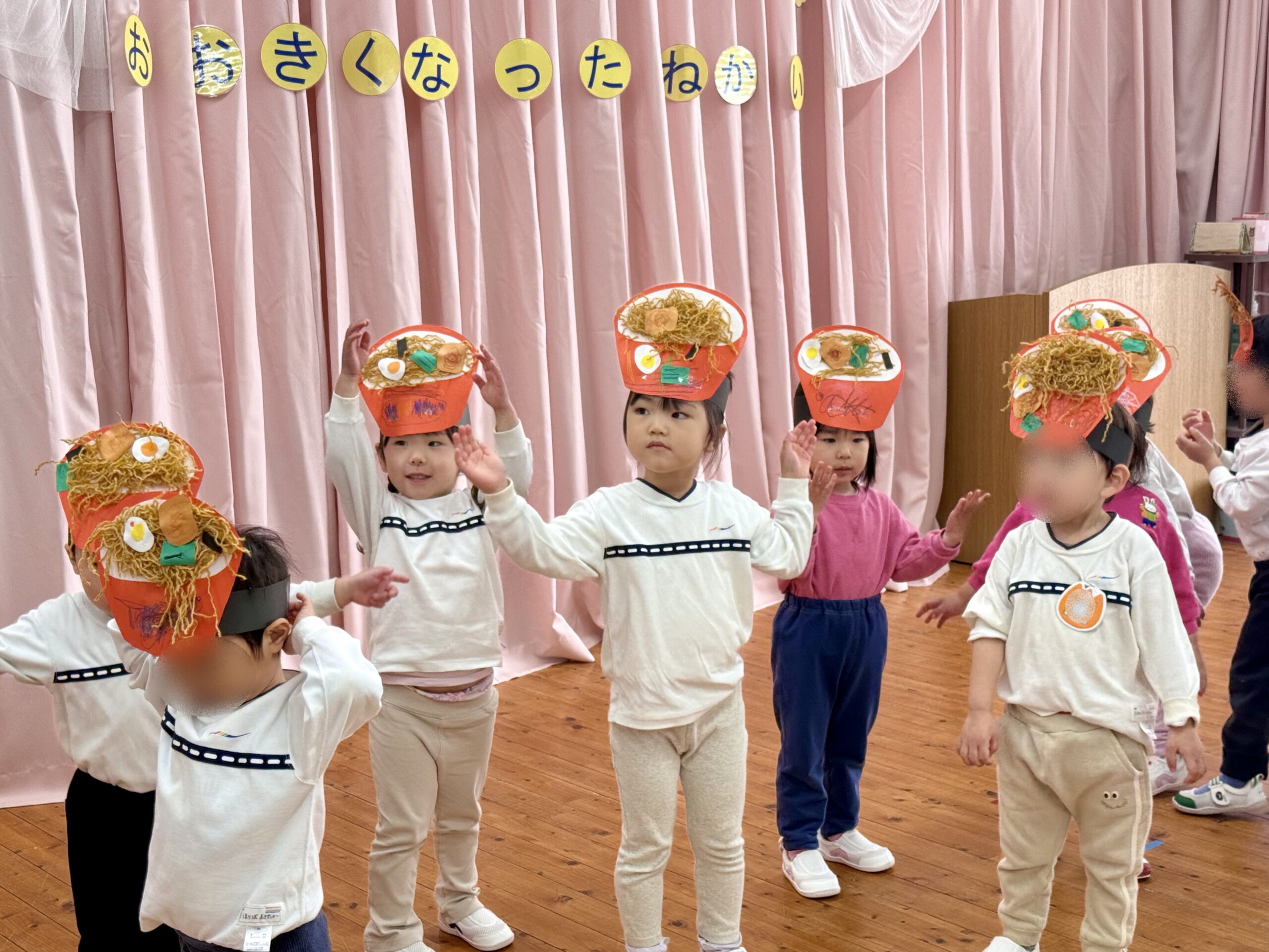 かわいらしいラーメン🍜のお面をつけて登場!