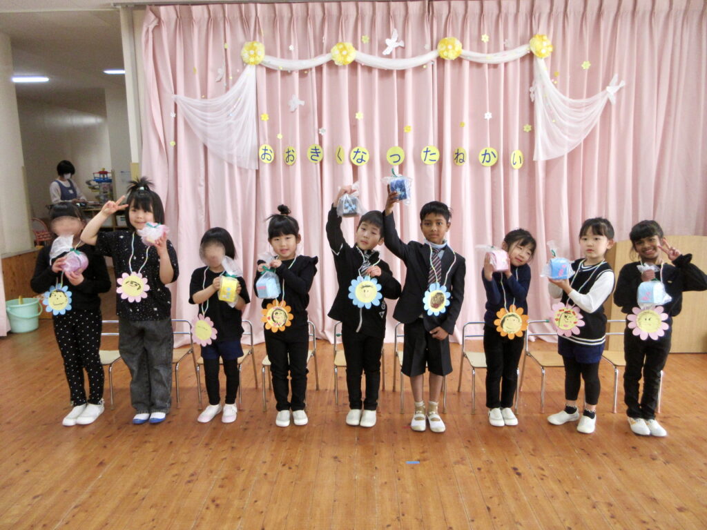 今日は一年の成長をみんなで喜ぶ「おおきくなったね会」。